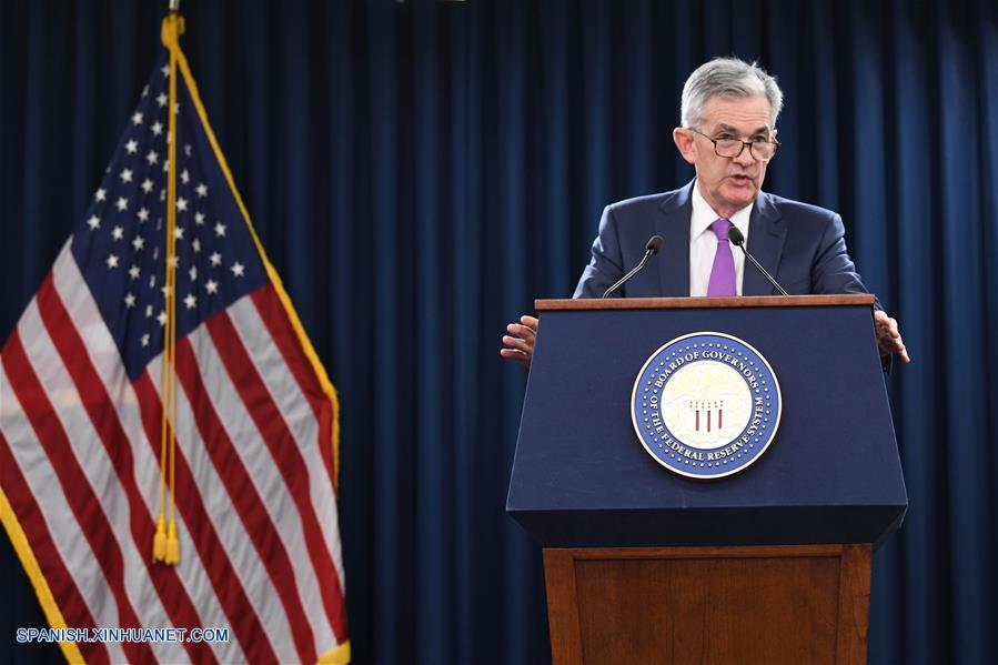 WASHINGTON D.C., septiembre 26, 2018 (Xinhua) -- El presidente de la Reserva Federal de Estados Unidos (Fed), Jerome Powell, participa durante una conferencia de prensa en Washington D.C., Estados Unidos, el 26 de septiembre de 2018. La Fed elevó el miércoles las tasas de interés a corto plazo en 0.25 por ciento, la tercera alza de este a?o y la octava desde finales de 2015. (Xinhua/Liu Jie)