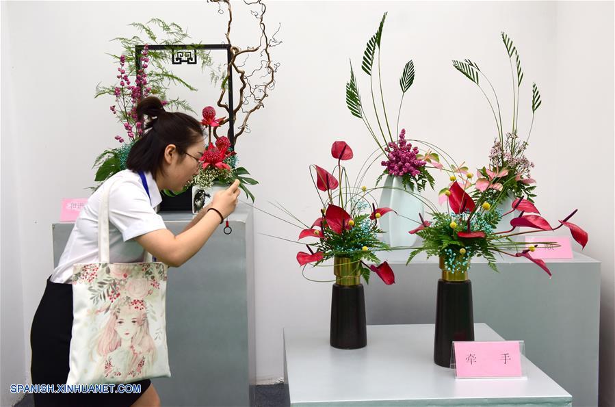 HENAN, septiembre 26, 2018 (Xinhua) -- Una visitante toma fotografías durante una feria de comercio de flores y árboles llevada a cabo en la ciudad de Xuchang, en la provincia de Henan, en el centro de China, el 26 de septiembre de 2018. La feria de comercio comenzó el miércoles. (Xinhua/Zhu Xiang)