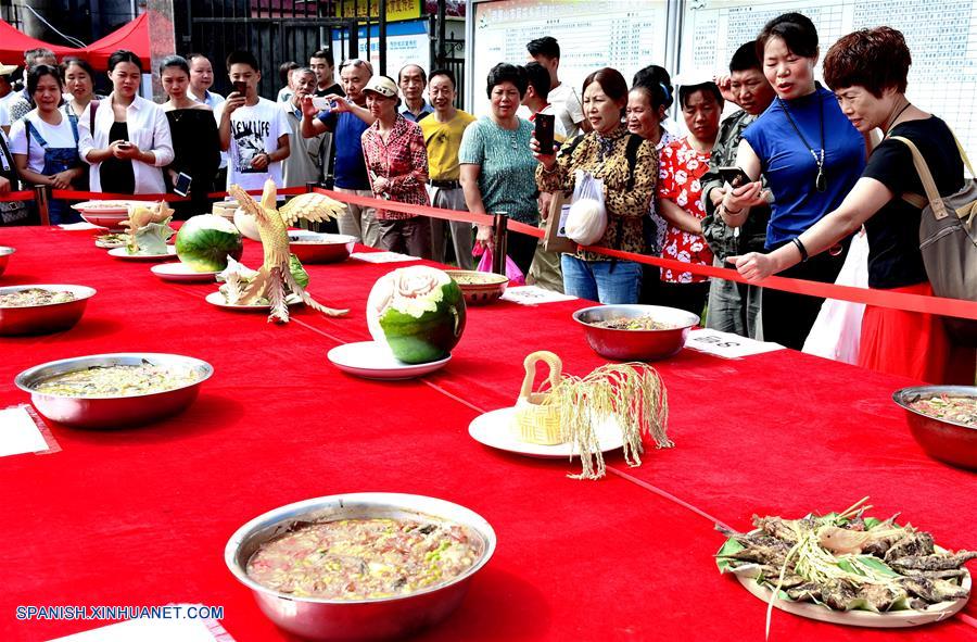 FUJIAN, septiembre 28, 2018 (Xinhua) -- Residentes observan el concurso de cocina durante un evento llevado a cabo celebrando la cosecha, en el municipio de Wutun de Wuyishan, provincia de Fujian, en el sureste de China, el 28 de septiembre de 2018. (Xinhua/Zhang Guojun)