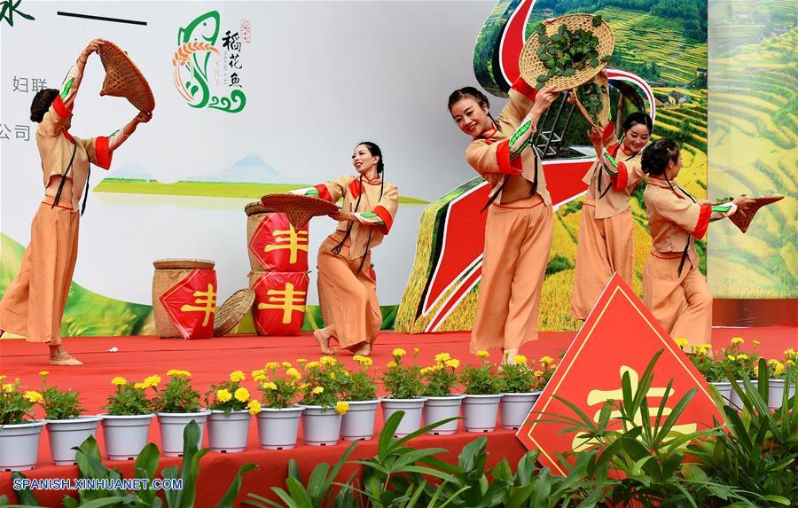 FUJIAN, septiembre 28, 2018 (Xinhua) -- Residentes realizan una actuación durante un evento llevado a cabo celebrando la cosecha, en el municipio de Wutun de Wuyishan, provincia de Fujian, en el sureste de China, el 28 de septiembre de 2018. (Xinhua/Zhang Guojun)