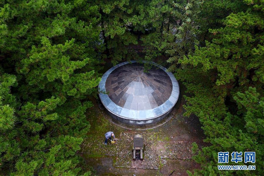 Una foto muestra a Zhao Naitang, de 73 a?os, trabajando en el Cementerio de los Mártires, en Huangyadong, condado Licheng, provincia de Shanxi. Huangyadong fue un arsenal del octavo ejército y campo de batalla durante la guerra de resistencia del pueblo chino contra la agresión japonesa. Desde 1991, Zhao trabaja como custodio de este histórico cementerio donde descansan los restos mortales de 44 mártires de la patria. 18 de septiembre de 2018. (Foto: Xinhua)