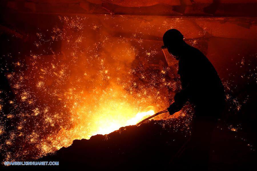 HEBEI, octubre 4, 2018 (Xinhua) -- Un trabajador labora en un taller de la empresa Yuhua Steel of Jinan Steel Group, en la ciudad de Wu'an, provincia de Hebei, en el norte de China, el 4 de octubre de 2018. Las personas de diversos sectores permanecen en sus puestos de trabajo durante las vacaciones del Día Nacional. (Xinhua/Wang Xiao)