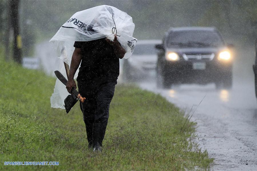 TEGUCIGALPA, octubre 6, 2018 (Xinhua) -- Una persona camina en medio de la lluvia en Tegucigalpa, Honduras, el 6 de octubre de 2018. La Comisión Permanente de Contingencias (Copeco) de Honduras, declaró el sábado alerta roja para tres departamentos debido a las lluvias que azotan ese país y que han dejado dos personas muertas y decenas de evacuados. (Xinhua/Rafael Ochoa)