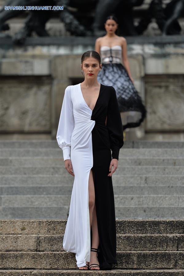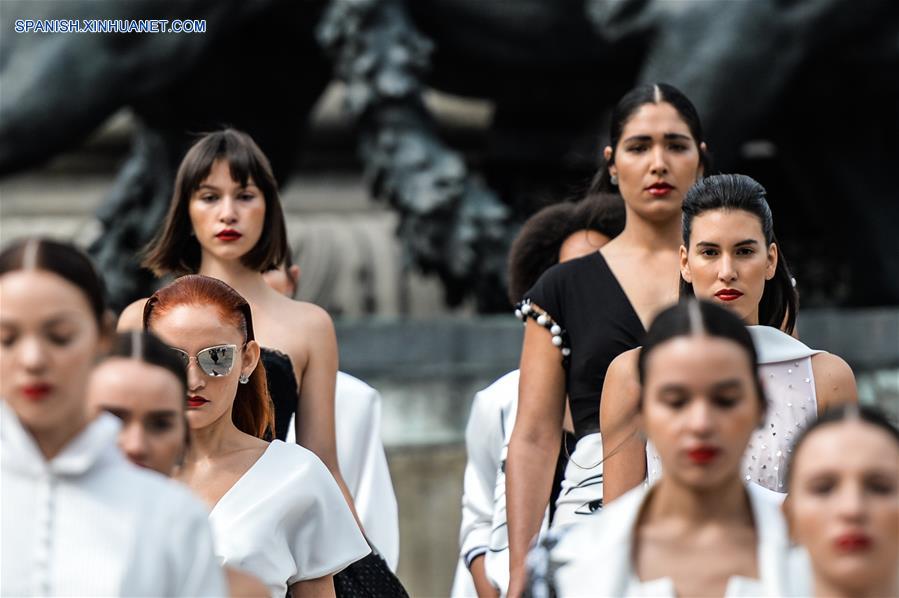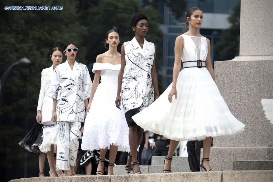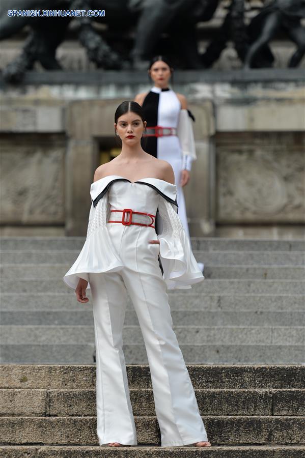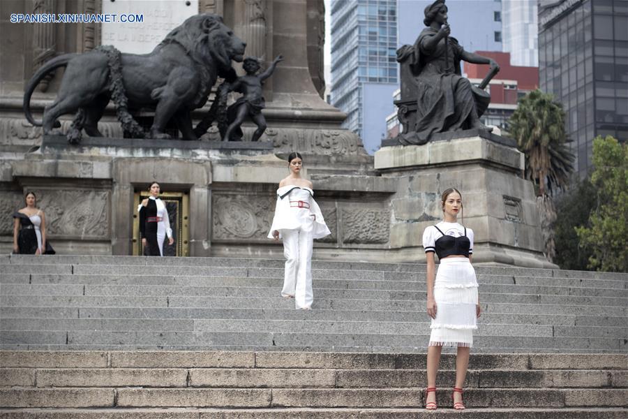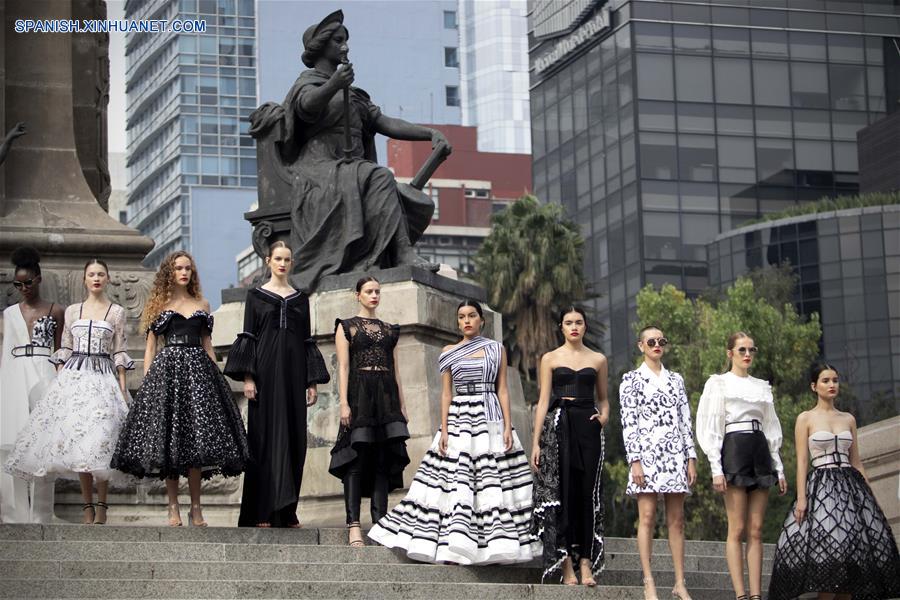CIUDAD DE MEXICO, octubre 7, 2018 (Xinhua) -- Modelos presentan creaciones del dise?ador mexicano Benito Santos, durante la Mercedes-Benz Fashion Week Mexico City, en el Monumento a la Independencia en la Ciudad de México, capital de México, el 7 de octubre de 2018. (Xinhua/Alejandro Ayala)