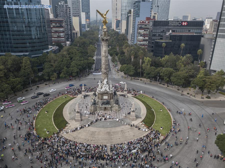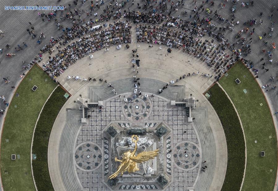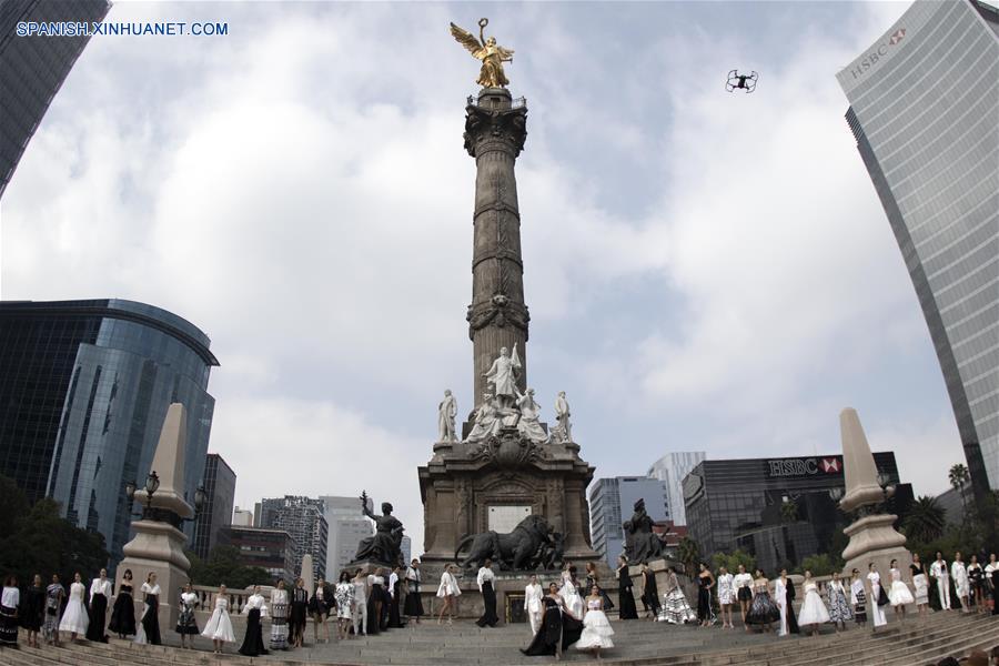 CIUDAD DE MEXICO, octubre 7, 2018 (Xinhua) -- Imagen tomada con un dron, de personas asistiendo a un desfile de modas del dise?ador mexicano Benito Santos durante la Mercedes-Benz Fashion Week Mexico City, en el Monumento a la Independencia en la Ciudad de México, capital de México, el 7 de octubre de 2018. (Xinhua/César Vicu?a)