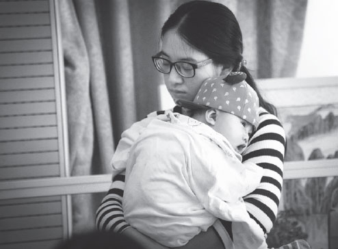 Una madre y su bebé, residentes en Tianjin, asisten a una reunión celebrada el a?o pasado en el Centro de Cuidado de Bebés de Shanghai, que atiende a más de 800 pacientes de todo el país que padecen la rara enfermedad, Epidermolisis bullosa. [Foto: Xu Ke]