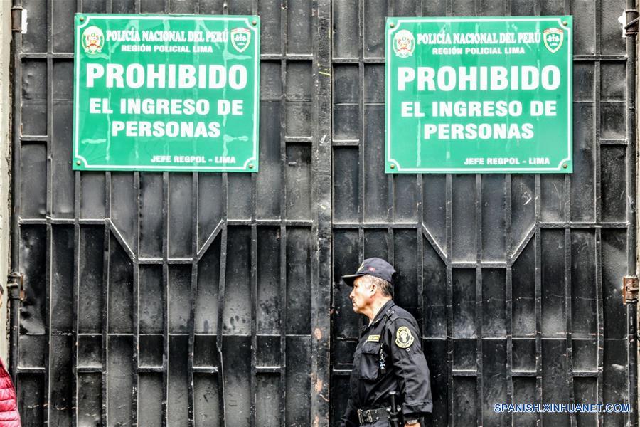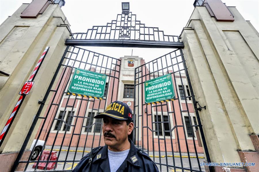 LIMA, octubre 10, 2018 (Xinhua) -- Un elemento de seguridad monta guardia en el exterior de la Prefectura de Lima, en donde se encuentra detenida Keiko Fujimori, en Lima, Perú, el 10 de octubre de 2018. La lideresa opositora peruana del partido político Fuerza Popular, Keiko Fujimori, fue detenida el miércoles por un plazo de 10 días cuando se presentó en el Ministerio Público en cumplimiento de una citación fiscal, confirmó su abogada Giuliana Loza. La hija del ex presidente Alberto Fujimori acudió la ma?ana del miércoles a la Fiscalía cumpliendo con una citación para declarar sobre los aportes que recibió su partido para la campa?a presidencial del a?o 2011, tras lo cual fue detenida ante un "peligro grave de fuga". (Xinhua/Luis Iparraguirre/ANDINA)