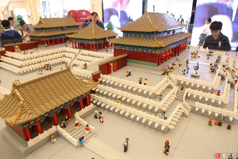 Una réplica del Museo del Palacio Imperial de Beijing, construída con piezas de Lego, se exhibe en Shanghai el 5 de octubre del 2018. La ductilidad de las piezas de lego facilitó recrear el imaginario de ciudades mundialmente conocidas. [Foto: IC]