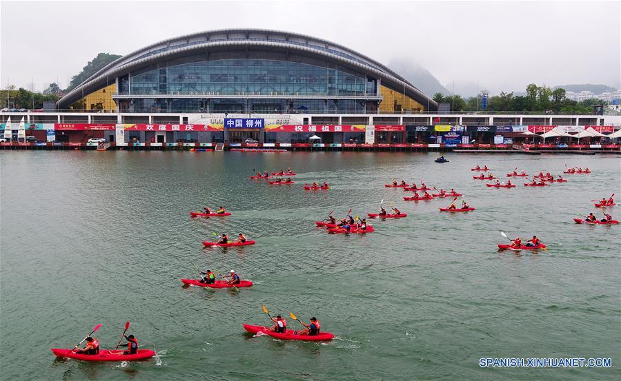 LIUZHOU, octubre 14, 2018 (Xinhua) -- Personas participan en una competencia de canotaje, en el río Liujiang en Liuzhou, en la Región Autónoma Zhuang de Guangxi, en el sur de China, el 14 de octubre de 2018. El evento se llevó a cabo entre sábado y domingo y atrajo a unos 500 entusiastas del canotaje nacionales e internacionales. (Xinhua/Li Hanchi)