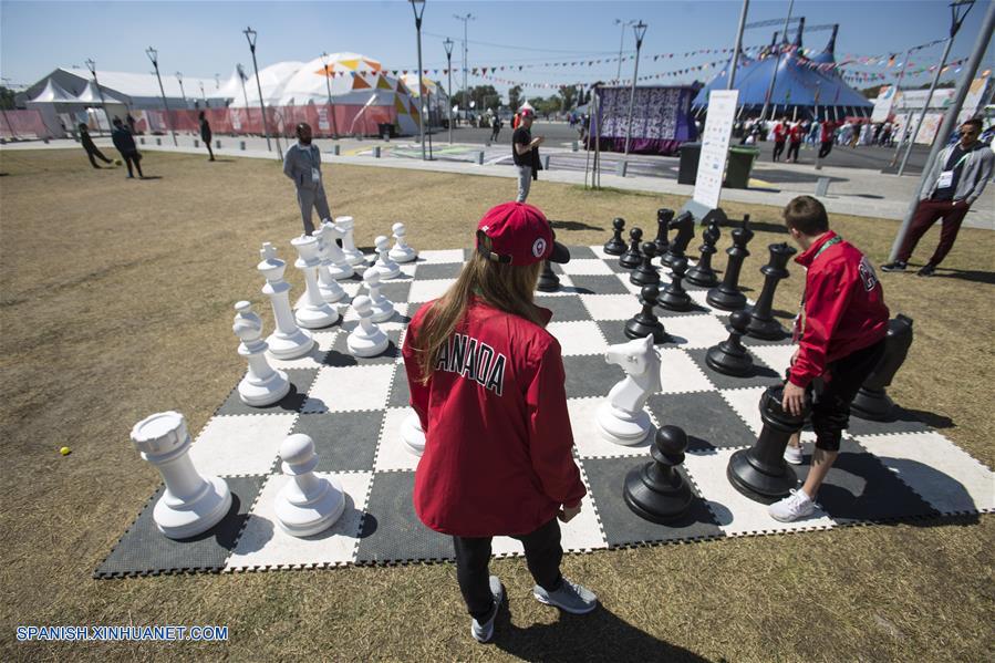BUENOS AIRES, octubre 14, 2018 (Xinhua) -- Imagen del 13 de octubre de 2018, de atletas de la delegación de Canadá jugando con un ajedrez gigante en la plaza central de la Villa Olímpica, en el marco de los Juegos Olímpicos de la Juventud de Buenos Aires 2018, en la ciudad de Buenos Aires, Argentina. La Villa Olímpica, donde se hospedan los 4,012 atletas de los Juegos Olímpicos de la Juventud de Buenos Aires 2018, se transformó en los últimos días en un escenario multicolor de amistad y camaradería. En el lugar, en el sur de la ciudad, barrio de Villa Soldati, se alojan deportistas de 206 delegaciones de países y regiones de los cinco continentes. Desde días antes de la prueba, la zona se llenó de movimiento con el ir y venir de los competidores, que se relacionaron entre sí a pesar de las dificultades de comunicación por los distintos idiomas. El inglés era el más utilizado para los diálogos, varios de ellos risue?os, y cada teléfono móvil fue sumando nuevos amigos en las redes sociales a un ritmo tan vertiginoso como las distintas disciplinas de los Juegos. (Xinhua/Martín Zabala)