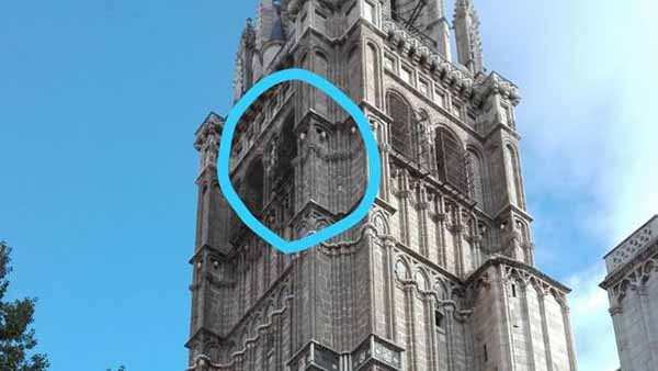 En realidad, el pesado fragmento se había desprendido de la parte baja del campanario de la única torre del templo primado, concretamente de una de las cornisas. El fragmento de granito, un ángulo desgajado desde una altura de unos 40 metros, se rompió en varios trozos al impactar primero en una cornisa y luego contra el suelo. Eran pasadas las siete y media de la ma?ana.