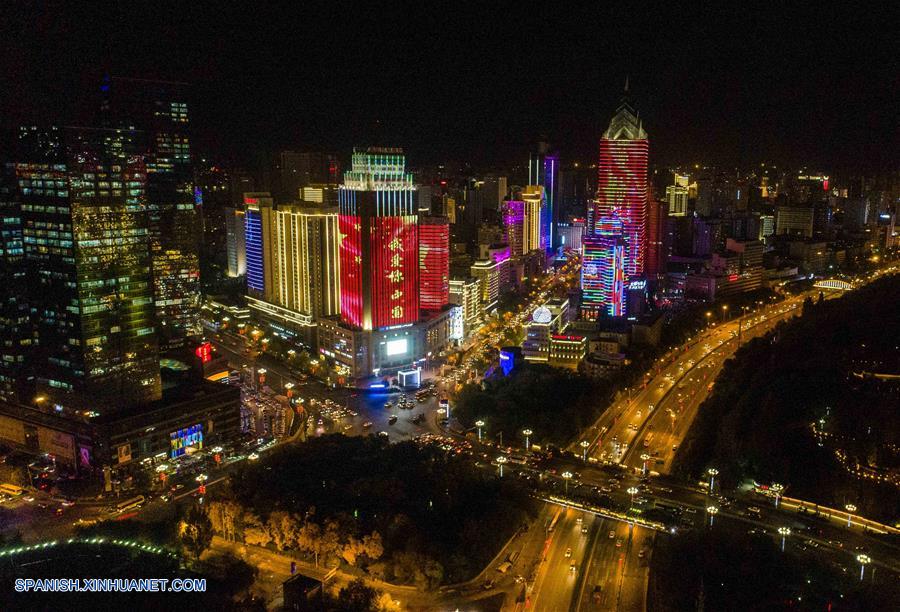 XINJIANG, octubre 16, 2018 (Xinhua) -- Imagen del 7 de octubre de 2018 de una vista aérea nocturna de Urumqi, capital de la Región Autónoma Uygur de Xinjiang, en el noroeste de China. (Xinhua/Bao Lin)