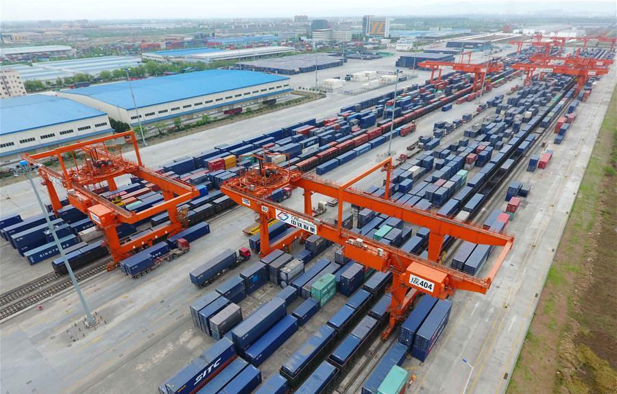 La foto muestra contenedores en un centro ferroviario de contenedores en el distrito de Qingbaijiang en Chengdu, capital de la provincia de Sichuan, al suroeste de China. Este centro de contenedores sirve como un centro logístico ferroviario en el suroeste de China. (Xinhua / Xue Yubin)