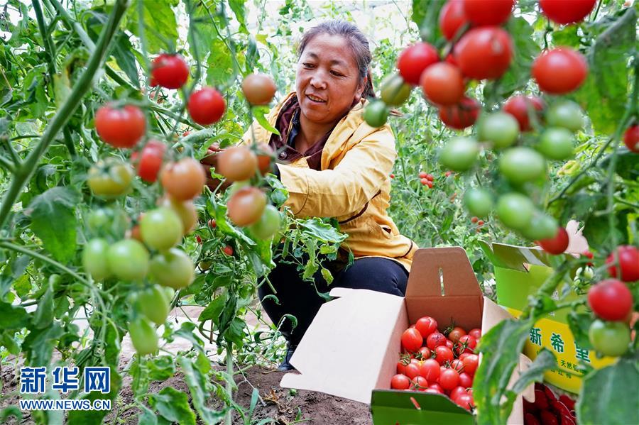 El 17 de octubre, Dai Shuying, miembro de la Cooperativa Profesional de Plantación de Verduras Nueva Esperanza del municipio de Cixi, en Luanzhou, recoge tomates en un invernadero. (Foto: Agencia de noticias Xinhua, reportero Yang Shizhen.)
