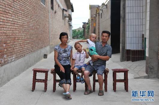 Los dos ni?os con sus abuelos en el puebloTaijia del condado Wanrong, en la provincia de Shanxi. (Foto: Zhan Yan/Xinhua)