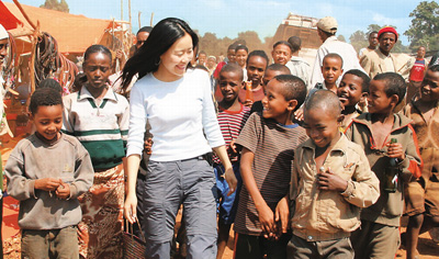 Feng Ai, honrada como con la distinción a los diez primeros voluntarios jóvenes de China, en 2005 sirvió como voluntaria en el extranjero.