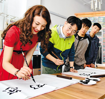 Los estudiantes extranjeros aprenden a escribir caracteres chinos.