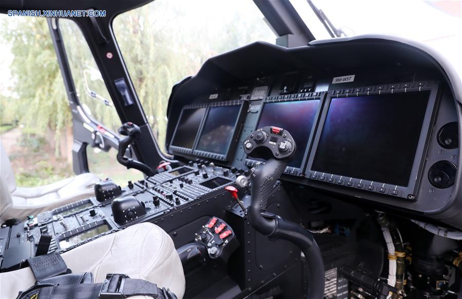SHANGHAI, octubre 20, 2018 (Xinhua) -- Vista del interior de un helicóptero AW189 fabricado por Leonardo de Italia, en Shanghai, en el este de China, el 20 de octubre de 2018. El helicóptero será exhibido en la Exposición Internacional de Importaciones de China (CIIE, por sus siglas en inglés). (Xinhua/Fang Zhe)