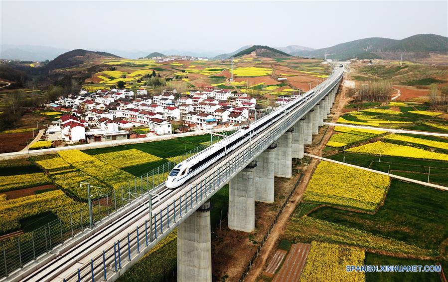 SHAANXI, octubre 20, 2018 (Xinhua) -- Imagen del 21 de marzo de 2018 de un tren bala corriendo sobre la sección de Yangxian de la línea ferroviaria de alta velocidad Xi'an-Chengdu, en la provincia de Shaanxi, en el noroeste de China. Si usted vino a Beijing, capital de China, hace 40 a?os, probablemente le sorprendió el "mar de bicicletas" en las calles", un fenómeno único que le ha dado a China el título de "reino de las bicicletas". En ese momento, el chino ordinario no podía comprar automóvil y pocas personas podían viajar por avión, por no hablar de los viajes frecuentes de larga destancia. Los trenes, el medio de transporte más común en ese momento, siempre estaban atestados. Sin embargo las ruedas del cambio han comenzado a moverse en China. En el invierno de 1978, el líder chino Deng Xiaoping inició la reforma histórica y la apertura política, que allanaría el camino para un impresionante desarrollo del país más poblado del mundo. Durante las etapas iniciales de reforma y apertura, muchos chinos tenían suficiente comida y ropa, pero viajar o comprar automóviles privados todavía se consideraba un lujo. Con el paso del tiempo, más personas pudieron comprar automóviles privados y gradualmente el turismo se ha convertido en parte inseparable de la vida de los chinos. Con una variedad de medios de transporte disponibles, los chinos son obviamente los más afortunados en términos de viajes. China es uno de los países con mayor tránsito aéreo y cuenta con redes de ferrocarril de alta velocidad envidiables. A finales de 2017, el ferrocarril de alta velocidad en el país totalizó 25,000 kilómetros, lo que representa el 66.3 por ciento del total mundial. El transporte público urbano, incluidos autobuses, el metro y los taxis, ofrecen servicios más cómodos. Respaldada por la innovación del comercio electrónico, la bicicleta sigue estando de moda como parte de la economía compartida de China, incluso hoy en día, después de que los atascos y la contaminación de automóviles en las grandes ciudades estimularon un estilo de vida ecológico. Los autobuses y automóviles ecológicos se están convirtiendo en moda. El cambio de ruedas en China durante las últimas decenas de a?os es realmente un espejo del cambio de vida del pueblo chino. (Xinhua/Tang Zhenjiang)