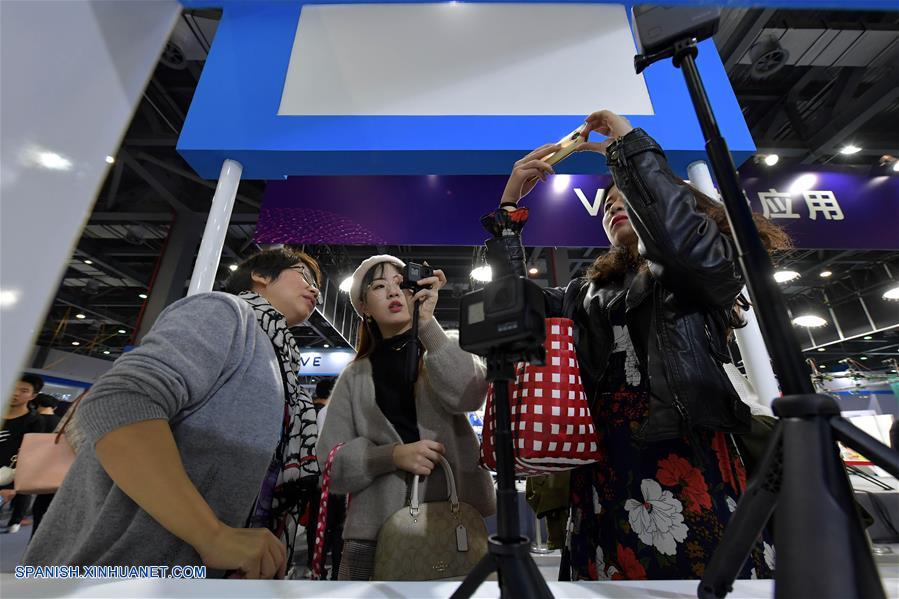 JIANGXI, octubre 19, 2018 (Xinhua) -- Visitantes toman fotografías del dispositivo de transmisión en vivo de Realidad Virtual (RV) durante la Conferencia Mundial de la Industria de RV 2018, en Nanchang, provincia de Jiangxi, en el este de China, el 19 de octubre de 2018. La Conferencia Mundial de la Industria de Realidad Virtual (RV) 2018 se inauguró el viernes en la ciudad china de Nanchang, capital de la provincia oriental de Jiangxi, en la que será posible conocer los últimos avances de esta técnica en el mundo. El evento de tres días contará con una exposición sobre RV y foros centrados en ésta, en la inteligencia artificial y en la tecnología 5G. (Xinhua/Peng Zhaozhi)