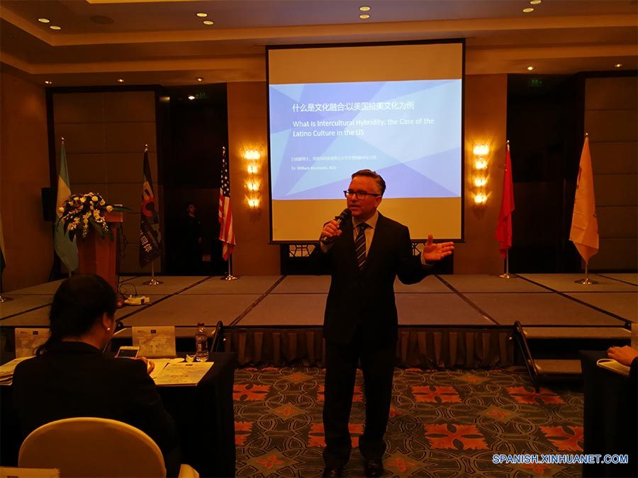 Este simposio celebrado conjuntamente por la Universidad Estatal de Arizona, la Comunidad de Estudios Chinos y Latinoamericanos, y el Centro de Estudios Latinoamericanos de la Universidad de Sichuan, congregó a expertos, empresarios y artistas de China, EEUU y América Latina para conversar sobre temas como la innovación y el emprendimiento en la comunicación intercultural China-América Latina y la confluencia cultural en la comunicación intercultural China-EEUU-América Latina.