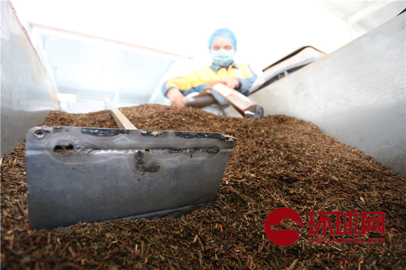 El día 20, los trabajadores de la fábrica de té en el Centro de Capacitación y Educación de Habilidades Vocacionales del condado Yutian distribuyen el té. (Fotografía por Fan Lingzhi)