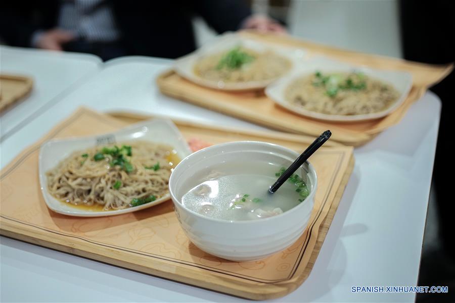 NUEVA YORK, octubre 23, 2018 (Xinhua) -- Imagen del 21 de octubre de 2018 de un plato de wonton de Shaxian y tallarines con salsa de cacahuate, que son los platillos principales del restaurante Shaxian Snacks, siendo mostrados en Brooklyn, Nueva York, Estados Unidos. La cadena de restaurantes chinos "Shaxian County cuisine" ha abierto su primer restaurante en Estados Unidos. Ubicado en el número 818, en la calle 60 en Brooklyn, el restaurante que abrió el lunes, le ofrece a los comensales de ultramar botanas chinas tradicionales, incluyendo tallarines en salsa de cacahuate y wontons de puerco. (Xinhua/Li Muzi)