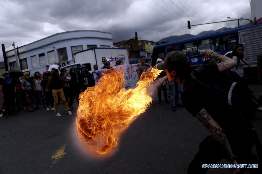 Un hombre participa en una protesta para exigir la protección de derechos de maestros y estudiantes del país, en Bogotá, Colombia, el 23 de octubre de 2018. La Federación Colombiana de Trabajadores de la Educación de Colombia (FECODE) informó este martes que más de 350,000 profesores participaron el martes en el paro de 24 horas convocado para exigir al Gobierno Nacional que proteja los derechos de maestros y estudiantes del país. Según los manifestantes es urgente que el Gobierno invierta en la infraestructura de las universidades y en el pago justo a los docentes que son quienes guían el futuro del país en medio de un periodo de posconflicto, tras la firma del acuerdo de paz con las FARC. (Xinhua/Alvaro Tavera/COLPRENSA)