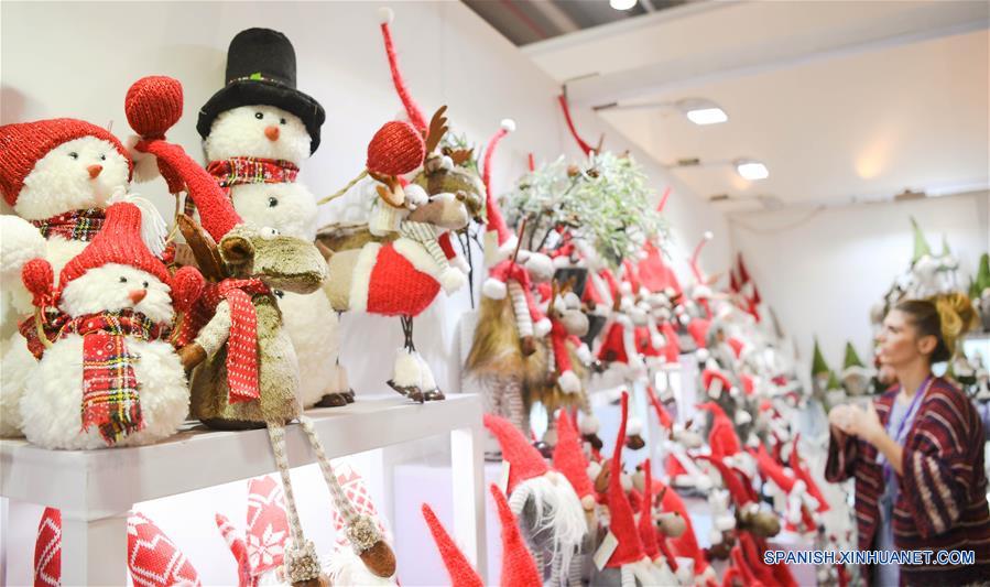 GUANGZHOU, octubre 23, 2018 (Xinhua) -- Decoraciones navide?as son exhibidas durante la 124 Feria de la Importación y Exportación de China, también conocida como Feria de Cantón, en Guangzhou, capital de la provincia de Guangdong, en el sur de China, el 23 de octubre de 2018. La segunda etapa de la feria fue inaugurada el martes en Guangzhou. (Xinhua/Deng Hua)