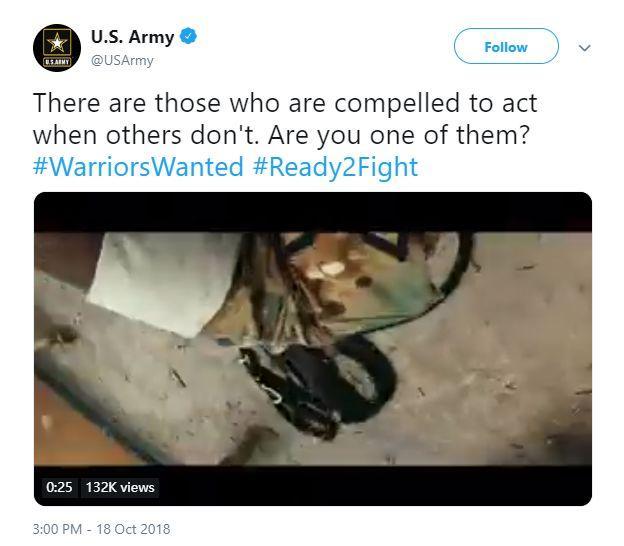 Ese mismo día, el ejército estadounidense presentó un vídeo de reclutamiento. Sin embargo, apenas llegó a las 140.000 visitas, a pesar de los 1,3 millones de personas que siguen su cuenta oficial en Twitter.