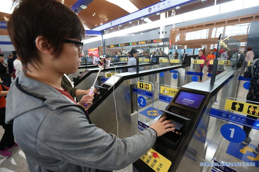 ZHUHAI, octubre 24, 2018 (Xinhua) -- Un hombre pasa a través de un canal automático en el puerto de Zhuhai del puente Hong Kong-Zhuhai-Macao, en Zhuhai, provincia de Guangdong, en el sur de China, el 24 de octubre de 2018. El puente Hong Kong-Zhuhai-Macao, el puente marítimo más largo del mundo, abrió oficialmente al tránsito a las 9:00 horas del 24 de octubre. (Xinhua/Zhang Jiayang)