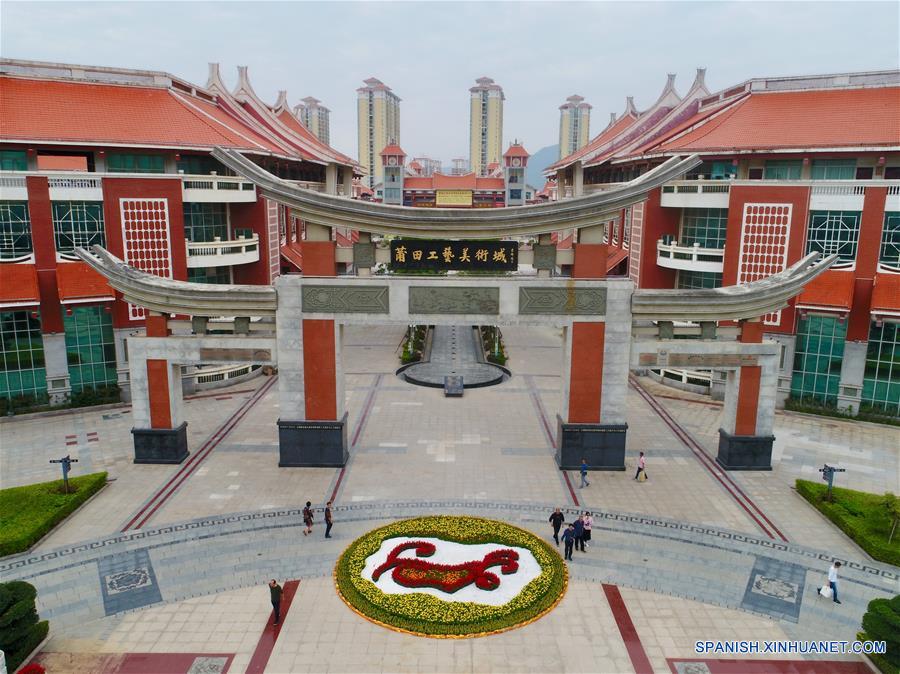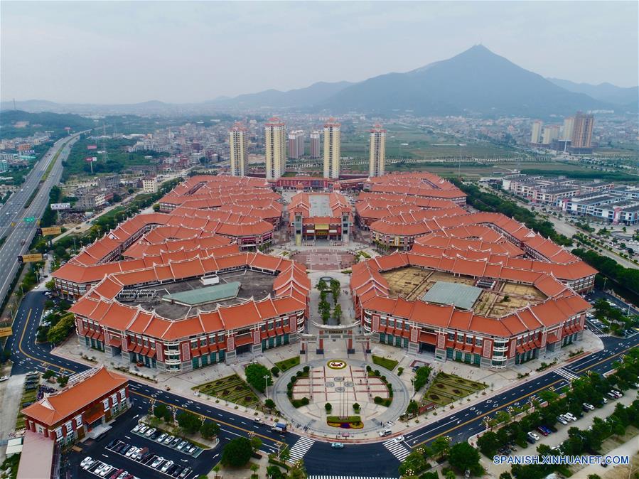 FUJIAN, octubre 25, 2018 (Xinhua) -- Imagen del 24 de octubre de 2018 de una vista aérea de un mercado de artesanías, en Putian, provincia de Fujian, en el sureste de China. La industria de las artesanías en Putian ha creado cerca de 300,000 empleos y alcanzó un valor de producción anual de 46.57 mil millones de yuanes (aproximadamente 6.71 mil millones de dólares estadounidenses) en 2017. (Xinhua/Jiang Kehong)