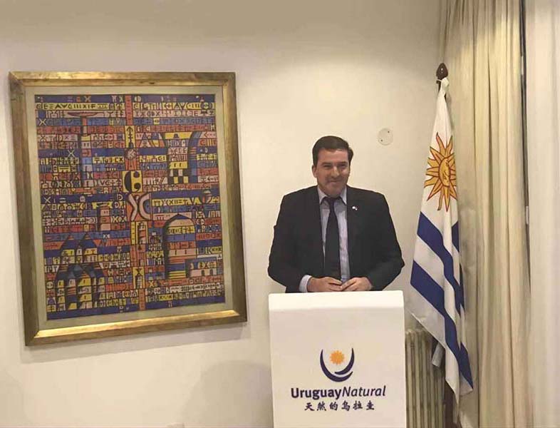 El embajador de Uruguay en China, Fernando Lugris, presentó un discurso. (Foto: Wu Sixuan/Pueblo en Línea)