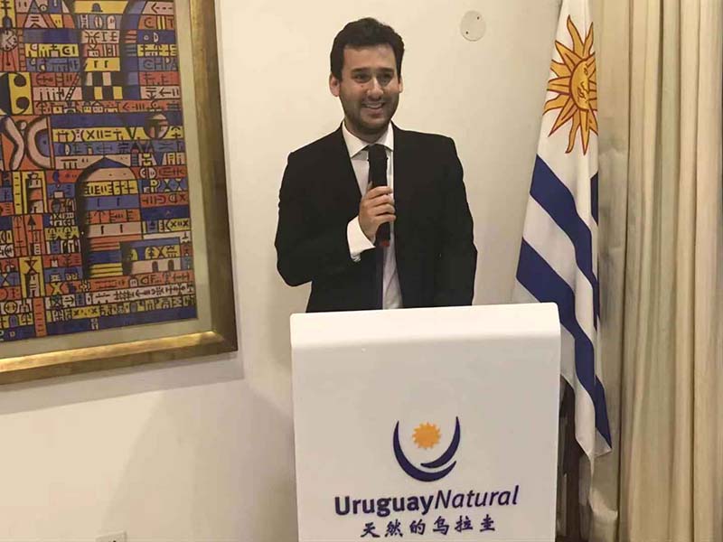El embajador de Uruguay y Nicolás Santo con los invitados del evento. (Foto: Wu Sixuan/Pueblo en Línea)