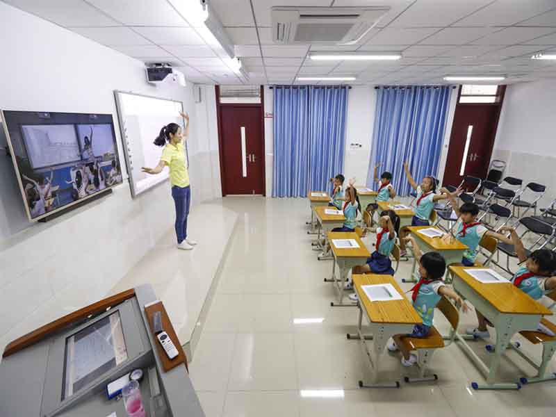 “A través de la plataforma de aprendizaje, en el aula se configura la pantalla para que los estudiantes puedan ver a su maestro en tiempo real”, explica Zhong, y a?ade que la ense?anza a distancia es una excelente forma de superar la falta de docentes en las escuelas rurales.
