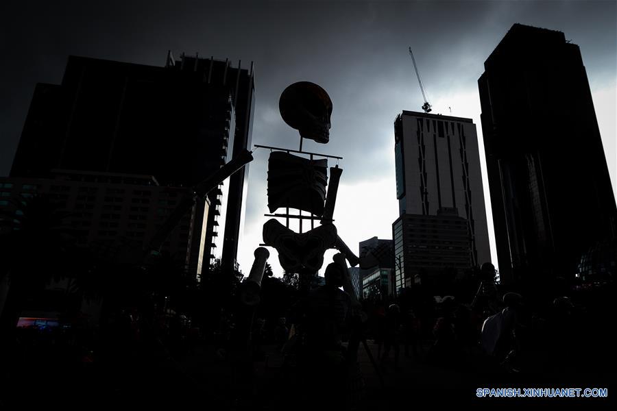 Una calavera gigante es exhibida durante el Desfile de Día de Muertos 2018, en el marco de la celebración mexicana de Día de Muertos, en la Ciudad de México, capital de México, el 27 de octubre de 2018. De acuerdo con información de la prensa local, esta es la tercera edición del desfile, y comenzó en el monumento Estela de Luz y concluyó en el Zócalo de la capital de México. (Xinhua/Francisco Ca?edo)