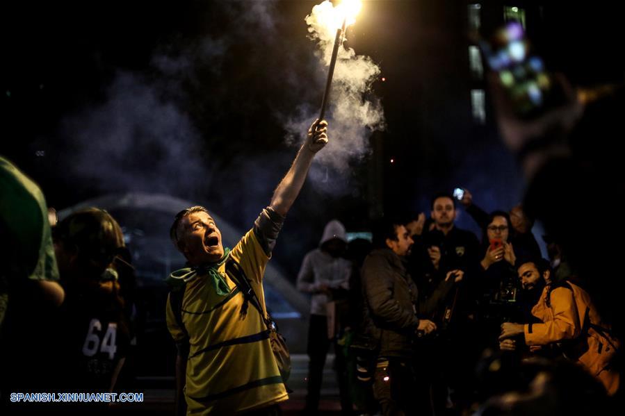 SAO PAULO, octubre 28, 2018 (Xinhua) -- Un simpatizante del candidato presidencial Jair Bolsonaro, por el Partido Social Liberal (PSL), enciende una bengala mientras espera los resultados de las elecciones generales en Sao Paulo, Brasil, el 28 de octubre de 2018. El candidato del Partido Social Liberal (PSL), Jair Bolsonaro, es el ganador virtual de las elecciones a la Presidencia de Brasil, con el 55,54 por ciento de los votos, contra el 44,46 por ciento de su rival, Fernando Haddad, del Partido de los Trabajadores (PT), al escrutarse el 94,44 por ciento del escrutinio realizado, según datos del Tribunal Superior Electoral (TSE). (Xinhua/Rahel Patrasso)