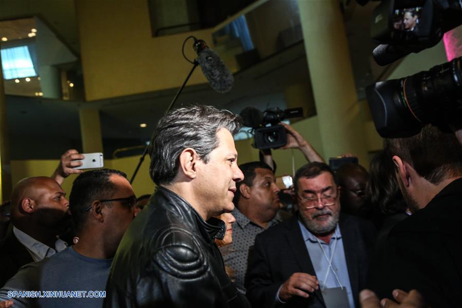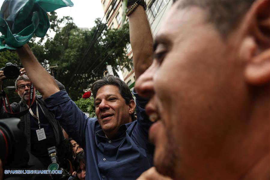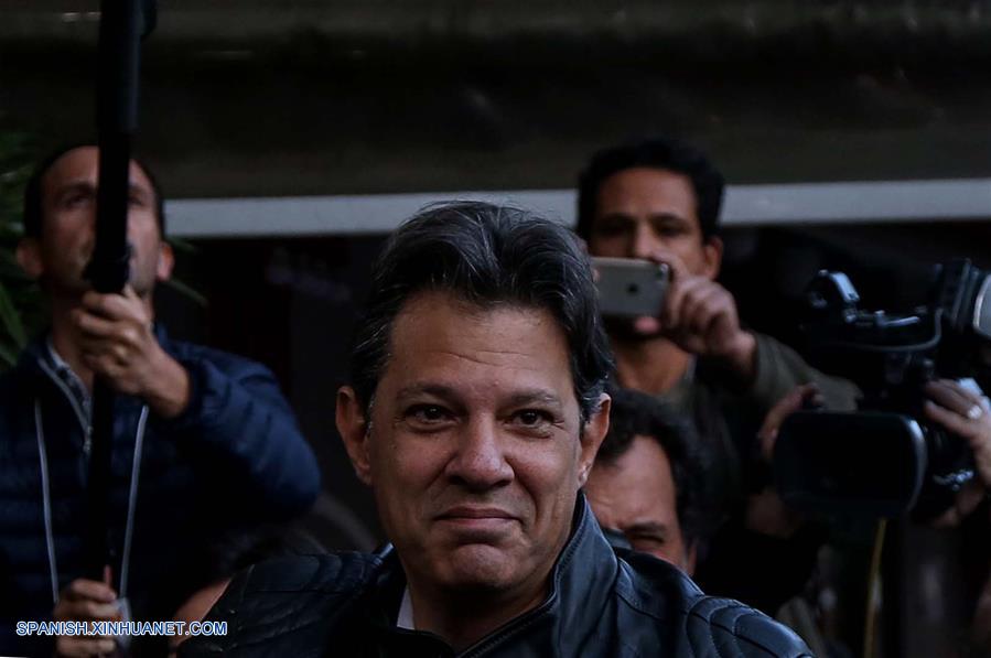SAO PAULO, octubre 28, 2018 (Xinhua) -- El candidato presidencial por el Partido de los Trabajadores (PT), Fernando Haddad, acude a emitir su voto en una casilla electoral para la segunda vuelta de las elecciones generales, en Sao Paulo, Brasil, el 28 de octubre de 2018. Los colegios electorales abrieron las puertas el domingo en Brasil a las 8:00, hora de Brasilia (11:00 GMT), para la segunda vuelta de las elecciones generales, en las que se elegirán al presidente y vicepresidente del país para los próximos cuatro a?os. (Xinhua/Rahel Patrasso)