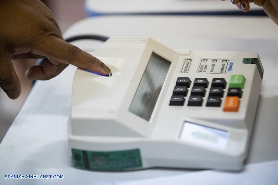RIO DE JANEIRO, octubre 28, 2018 (Xinhua) -- Un hombre emite su voto para la segunda vuelta de las elecciones generales, en una casilla electoral en Río de Janeiro, Brasil, el 28 de octubre de 2018. Los colegios electorales abrieron las puertas el domingo en Brasil a las 8:00, hora de Brasilia (11:00 GMT), para la segunda vuelta de las elecciones generales, en las que se elegirán al presidente y vicepresidente del país para los próximos cuatro a?os. (Xinhua/Li Ming)