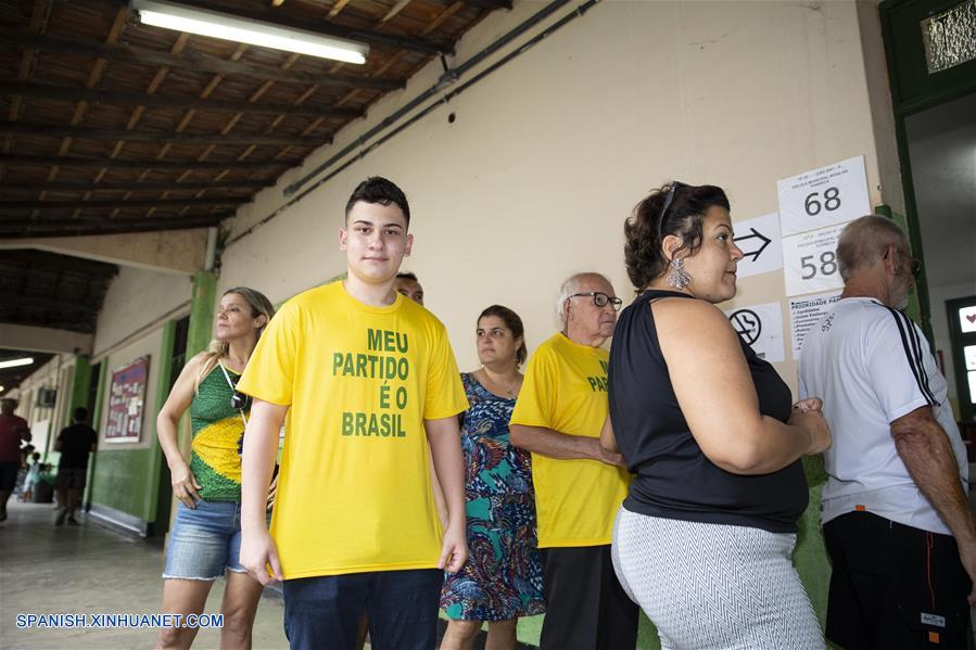 RIO DE JANEIRO, octubre 28, 2018 (Xinhua) -- Personas esperan para emitir su voto para la segunda vuelta de las elecciones generales, en una casilla electoral en Río de Janeiro, Brasil, el 28 de octubre de 2018. Los colegios electorales abrieron las puertas el domingo en Brasil a las 8:00, hora de Brasilia (11:00 GMT), para la segunda vuelta de las elecciones generales, en las que se elegirán al presidente y vicepresidente del país para los próximos cuatro a?os. (Xinhua/Li Ming)