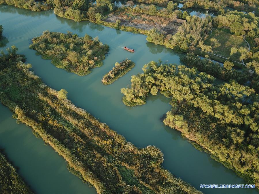 HANGZHOU, octubre 29, 2018 (Xinhua) -- Vista aérea del Parque Nacional del Humedal Xixi, en Hangzhou, en la provincia de Zhejiang, en el este de China, el 29 de octubre de 2018. (Xinhua/Weng Xinyang)