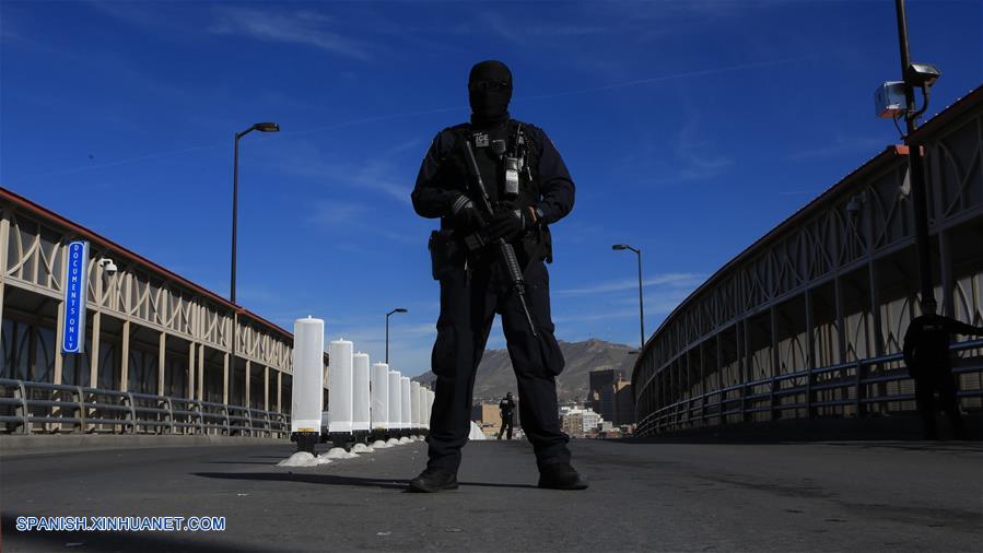 Un agente de la Oficina de Aduanas y Protección Fronteriza (CBP, por sus siglas en inglés) participa durante un simulacro de operativo en el Puente Internacional Paso del Norte, en Ciudad Juárez, estado de Chihuahua, México, el 29 de octubre de 2018. De acuerdo con información de la prensa local, los agentes federales de la CBP de Estados Unidos, realizaron un simulacro de operativo para recibir a la caravana de migrantes, con el objetivo de prepararse en caso de que un grupo de personas intente cruzar por la fuerza. El Pentágono desplegará 5,200 tropas en activo en la frontera entre Estados Unidos y México con el fin de disuadir a los integrantes de una caravana de migrantes que buscan ingresar de forma ilegal al país, anunció el lunes un funcionario. (Xinhua/Christian Torres)