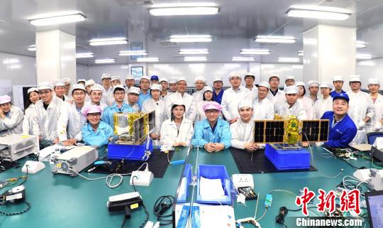 El personal de Spacety posa con sus satélites (Foto: Chinanews. com)