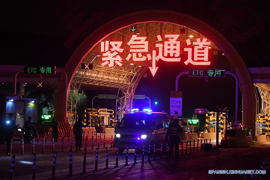 Una ambulancia llega al sitio de un accidente de tráfico en una estación de peaje en la autopista Lanzhou-Haikou, en Lanzhou, capital de la provincia de Gansu, en el noroeste de China, el 3 de noviembre de 2018. Al menos 14 personas murieron y 27 resultaron heridas como consecuencia de un choque múltiple ocurrido el sábado en una autopista de la provincia norocciental china de Gansu y que involucró a 31 vehículos, informaron las autoridades locales. (Xinhua/Chen Bin)
