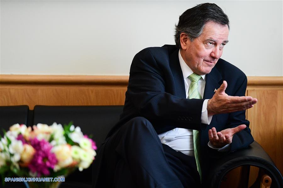 SANTIAGO, noviembre 4, 2018 (Xinhua) -- Imagen del 22 de octubre de 2018, del ministro de Relaciones Exteriores chileno, Roberto Ampuero, participando en una entrevista exclusiva con la Agencia de Noticias Xinhua, en la sede del Ministerio de Relaciones Exteriores, en Santiago, capital de Chile. China y Chile firmaron el viernes en Beijing un memorándum de entendimiento para impulsar conjuntamente la construcción de la Franja y la Ruta, acto que el ministro de Relaciones Exteriores chileno, Roberto Ampuero, calificó como punto de inicio de una nueva fase en las relaciones bilaterales. "Para Chile es una oportunidad muy interesante la que se abre, sobre todo en términos de infraestructuras", afirmó en una entrevista con Xinhua el ministro, quien se encuentra de visita en el país asiático para participar en la cuarta edición de la Semana de Chile en China (Chile Week China). (Xinhua/Jorge Villegas)