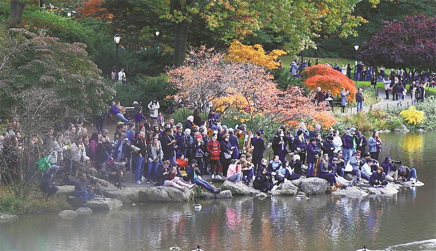 Durante este fin de semana, cientos de personas se reunieron alrededor del estanque -un cuerpo de agua en la esquina sureste del parque- para “conocer” al apuesto pato mandarín, un macho ataviado de brillantes colores, oriundo del este de Asia.