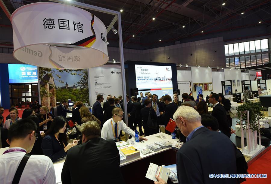 Personas visitan el pabellón de Alemania durante la primera Exposición Internacional de Importaciones de China (CIIE) en Shanghai, en el este de China, el 5 de noviembre de 2018. Un total de 82 países y tres organizaciones internacionales presentarán sus avances en el desarrollo económico y comercial así como productos competitivos en 71 pabellones que ocupan un área de casi 30.000 metros cuadrados. (Xinhua/Han Yuqing)