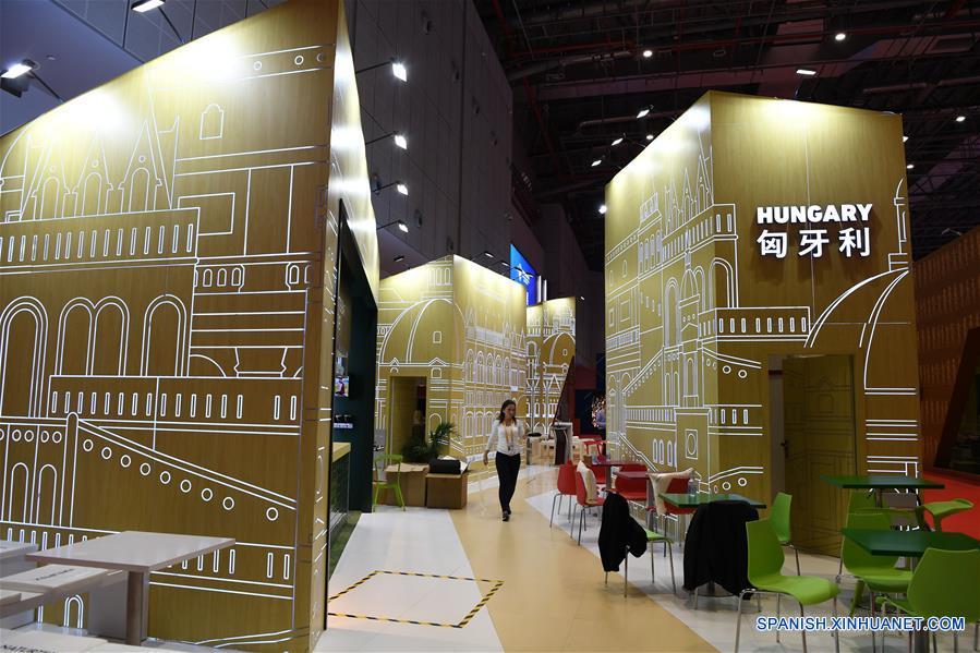 Vista del pabellón de Hungría durante la primera Exposición Internacional de Importaciones de China (CIIE) en Shanghai, en el este de China, el 5 de noviembre de 2018. Un total de 82 países y tres organizaciones internacionales presentarán sus avances en el desarrollo económico y comercial así como productos competitivos en 71 pabellones que ocupan un área de casi 30.000 metros cuadrados. (Xinhua/Sadat)