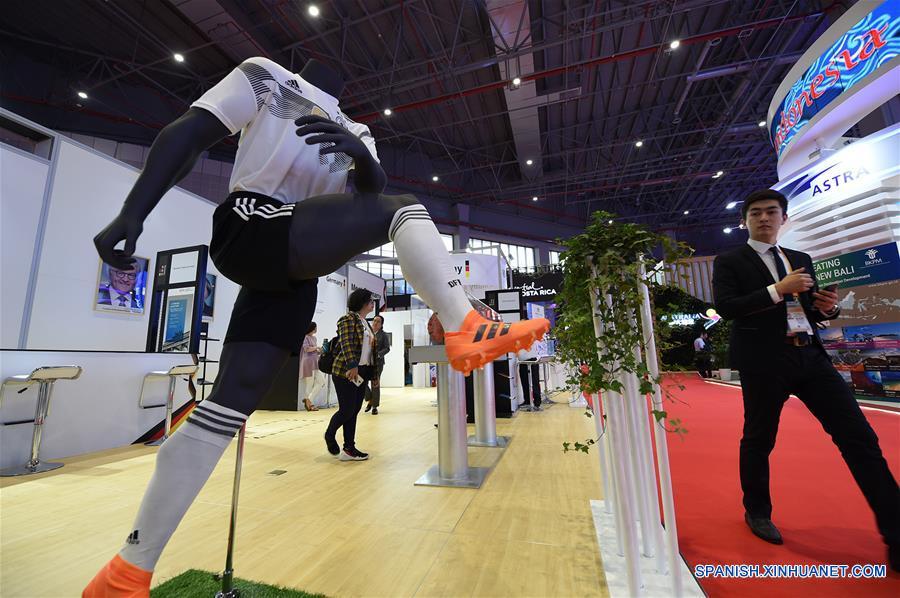 Un hombre visita el pabellón de Alemania durante la primera Exposición Internacional de Importaciones de China (CIIE) en Shanghai, en el este de China, el 5 de noviembre de 2018. Un total de 82 países y tres organizaciones internacionales presentarán sus avances en el desarrollo económico y comercial así como productos competitivos en 71 pabellones que ocupan un área de casi 30.000 metros cuadrados. (Xinhua/Han Yuqing)