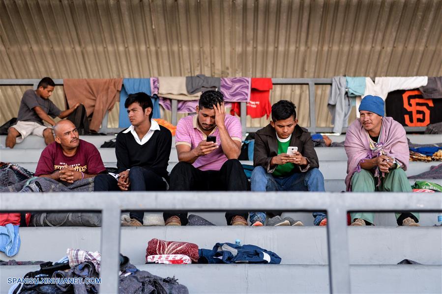 CIUDAD DE MEXICO, noviembre 5, 2018 (Xinhua) -- Personas que participan en la caravana migrante, toman un descanso, en el Estadio Jesús Martínez "Palillo", en la Ciudad Deportiva Magdalena Mixhuca, en la Ciudad de México, capital de México, el 5 de noviembre de 2018. Más de 2,200 migrantes centroamericanos de la masiva caravana que atraviesa México rumbo a Estados Unidos han llegado a la capital del país desde el domingo, informaron el lunes autoridades locales. A su entrada a la Ciudad de México, los cientos de familias con ni?os o adultos que viajan solos son dirigidos a un albergue que se habilitó en un estadio ubicado en el este de la urbe. (Xinhua/Xin Yuewei)